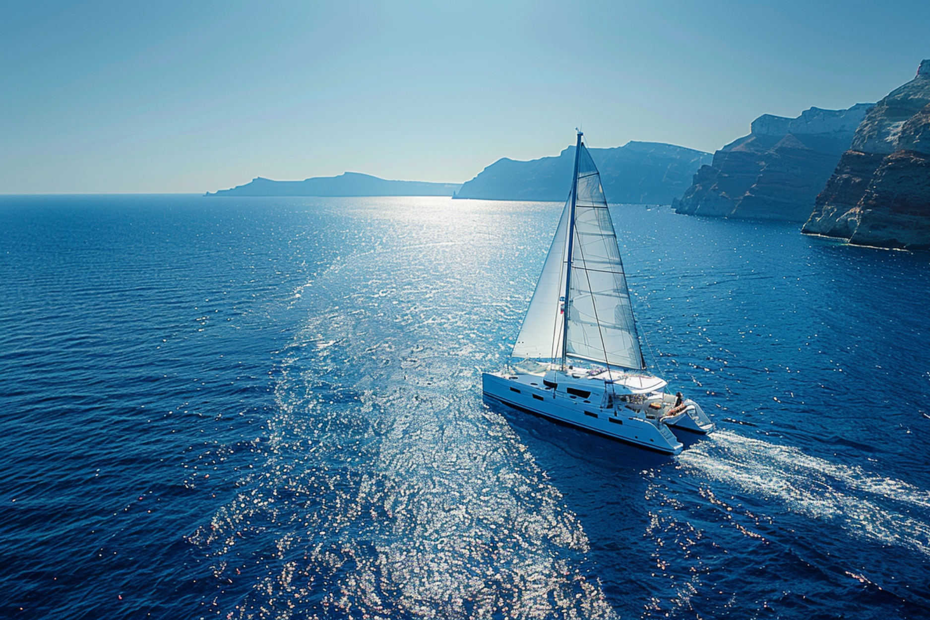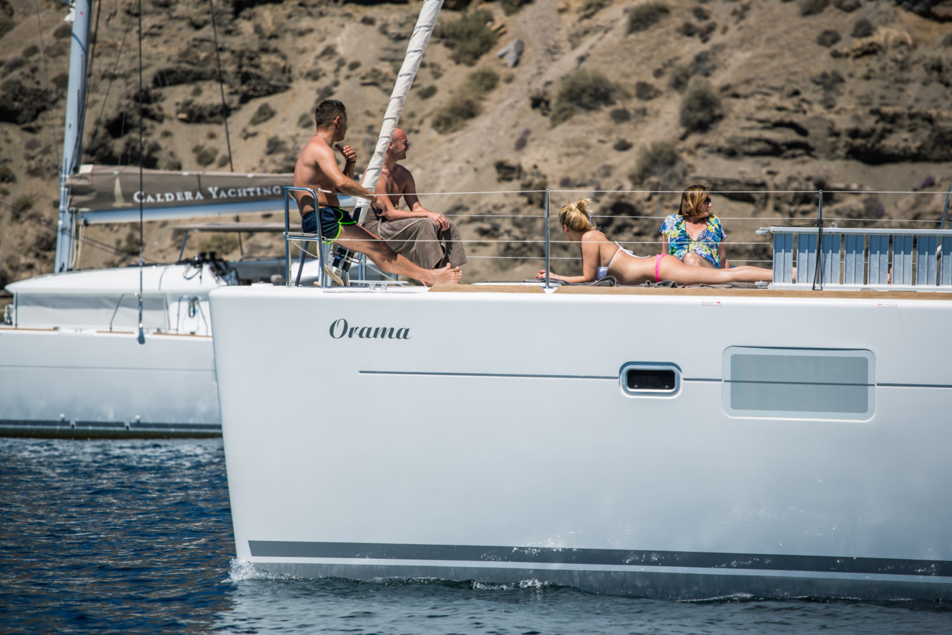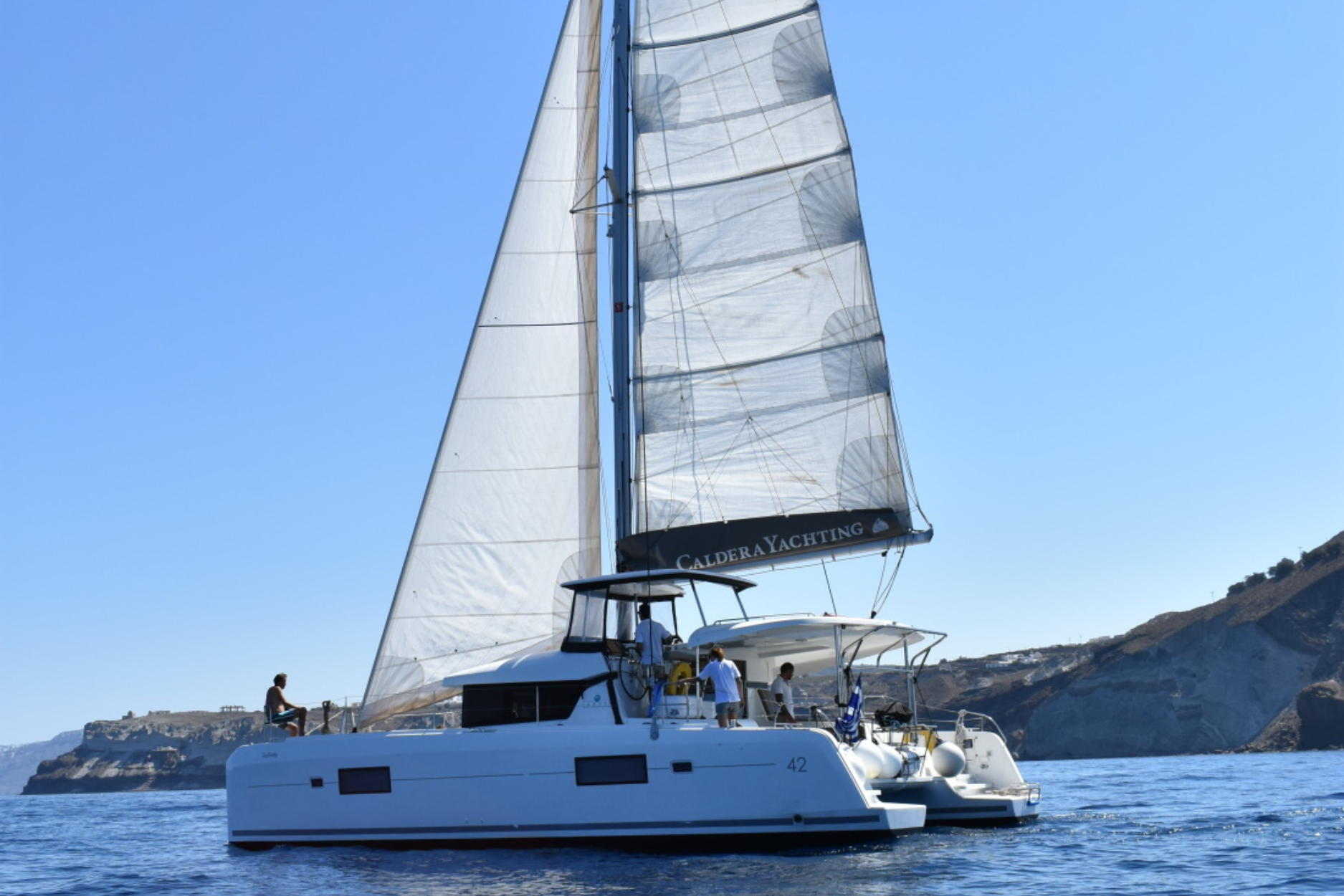 Sail in spacious luxury aboard the Lagoon 500, a premium private catamaran perfect for unforgettable moments, stunning Caldera views, and first-class comfort across Santorini’s iconic waters.